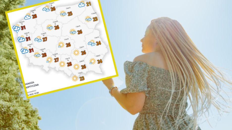 Niedziela zacznie się bezchmurnie lub z małym zachmurzeniem. Po południu zachmurzenie będzie na zachodzie wzrastać do dużego. Na krańcach zachodnich wieczorem możliwe burze. Temperatura maksymalna od 21 stopni, 23 stopnie na wschodzie i południu, oraz około 25 stopni w centrum do 31, do 33 stopnie na zachodzie kraju.