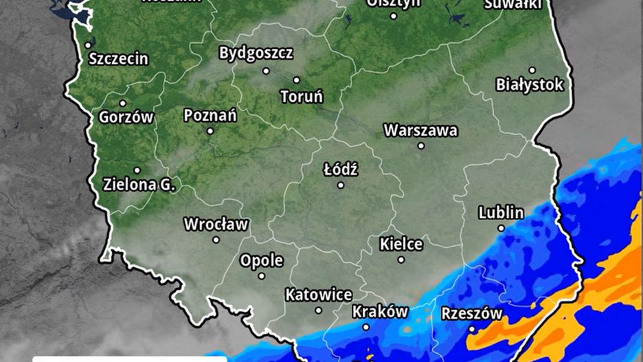 W nocy z czwartku na piątek na południu i południowym wschodzie zachmurzenie całkowite z przejaśnieniami i opady deszczu. W Karpatach opady mogą sięgać nawet 45 mm. Na pozostałym obszarze kraju zachmurzenie będzie umiarkowane, z przelotnymi opadami deszczu na północy.
