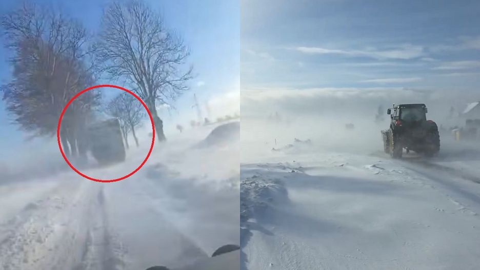 Nagranie udostępnione przez OSP Markowa ukazuje, jak silny wiatr tworzy gęste śnieżne tumany, znacznie ograniczające widoczność. Na drogach powstają zaspy, a przejazd nawet dużych pojazdów staje się niebezpieczny.