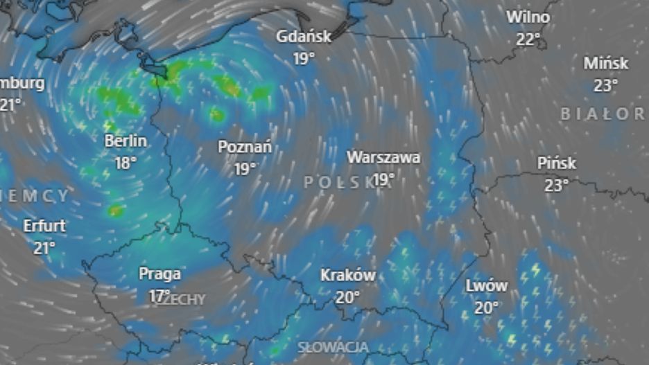 - Polska pod wpływem niżu z opadami deszczu i burzami.