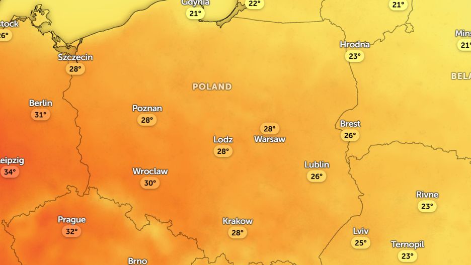 W środę meteorolodzy przewidują dalszy wzrost temperatury. Na południowym zachodzie zrobi się upalnie. Termometry mogą wskazać nawet 32 st. C. W centrum i na południu będzie około 28 st. C. Najchłodniej na północnym wschodzie i w rejonach podgórskich Karpat około 25 st. C.