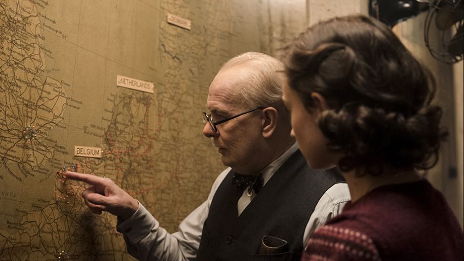 "Czas mroku" to przede wszystkim wybitna kreacja Gary'ego Oldmana. Za rolę w filmie Wrighta aktor zgarnął praktycznie wszystkie liczące się nagrody, w tym Oscara i Złoty Glob. Odmieniony nie do poznania przez utalentowanych charakteryzatorów Brytyjczyk tworzy sugestywny i przejmujący obraz człowieka, który musi uwolnić się od pełnej porażek przeszłości i w przyspieszonym trybie dorosnąć do wielkości, do której zawsze aspirował.