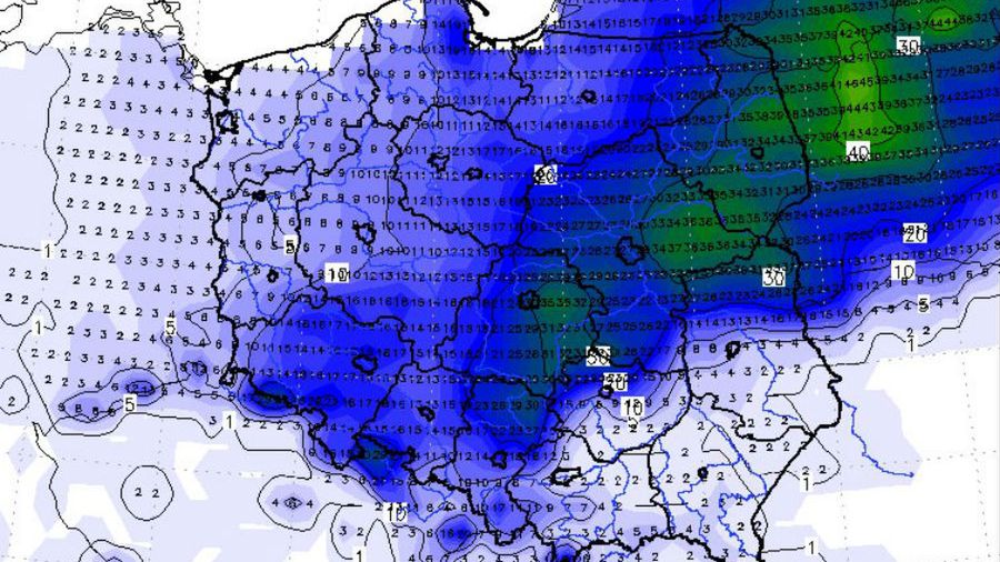 Wraz z początkiem tygodnia do Polski powrócą chmury, deszcz, w kolejnych dniach temperatura nocami spadnie poniżej zera. W następny weekend szykuje się powrót zimy. Mapka wskazuje na opady śniegu, które pozostawią w Polsce warstwę nawet 30 centymetrów śniegu. W Warszawie ma spaść ponad 20 cm śniegu. Szczęśliwi mogą być tylko mieszkańcy Pomorza Zachodniego - tam jedynie poprószy.