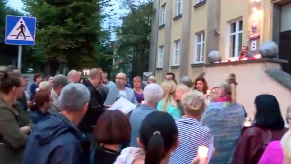 Na wideo widać, że gdy demonstranci uznali przechodnia za prowokatora, do akcji wkroczył powiatowy radny PO Marek Brzeziński, który otworzył karton z pizzą, wziął jeden kawałek i dosłownie wymazał nim twarz mężczyzny.