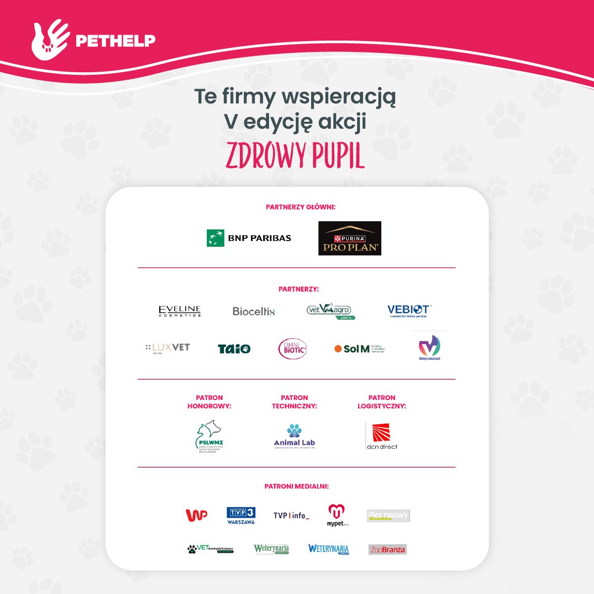 "Popieramy inicjatywę Pethelp mającą na celu upowszechnianie wiedzy z zakresu profilaktyki zdrowia psów i kotów oraz zwiększanie świadomości zdrowotnej opiekunów zwierząt. Jesteśmy przekonani, że działania realizowane w ramach akcji "Zdrowy Pupil" mają istotny wpływ na budowanie odpowiedzialnych postaw oraz realnie przyczyniają się do poprawy dobrostanu zwierząt towarzyszących.