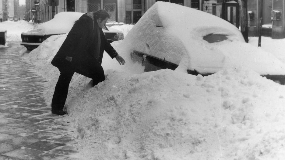 Paraliz WarszawyWarszawa 01.1979. Ulica Chmielna, na skrzyzowaniu z ulica Nowy Swiat. Kilkunastostopniowy mr�z i rekordowo wysokie pokrywy sniezne (31 stycznia w Warszawie zanotowano 70 cm sniegu) spowodowaly paraliz calego kraju.moPAP/Teodor WalczakTeodor Walczak1979, kleska zywiolowa, kozuch, lata 70, mezczyzna, moda, motoryzacja, mr�z, odsniezac, odsniezanie, pogoda, PRL, samochody, samoch�d, snieg, ulica, warszawa, zaspy, zima stulecia, zywiol