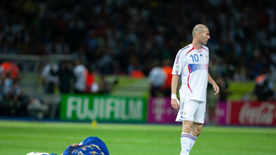 France v Italy - FIFA World Cup Final 2006BERLIN, GERMANY - JULY 09: Zinedine Zidane of France walks away after headbutting Marco Materazzi of Italy during the World Cup Final match between France (1) and Italy (1). Italy would win on penalties (5) to (3) at the Olympiastadion on July 09, 2006 in Berlin, Germany. (Photo by Simon Bruty/Anychance/Getty Images)Simon M Bruty