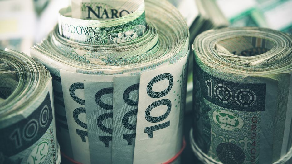 Polish Zloty Cash Rolls. One Hundred Polish Zloty Rolled Banknotes.