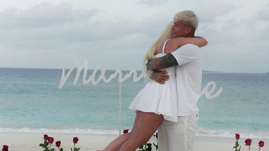 Piątkowski doskonale przygotował się do tej chwili. Wszystko odbyło się na bezludnej, piaszczystej plaży. Nad turkusową wodą rozrzucił róże, a pochodnie zapewniły im romantyczne światło.