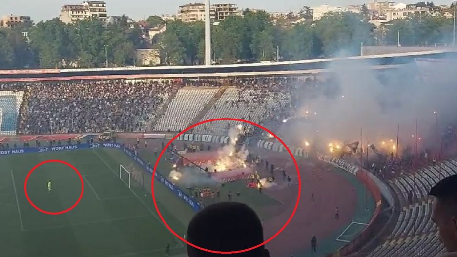 Amatorskie nagrania pokazują, że Milan Borjan musiał uważać na to, co dzieje się za jego plecami. W kierunku bramkarza poleciała pirotechnika. Borjan starał się jak najdalej to było możliwe oddalić od sektorów Partizana, żeby żadna z odpalonych rac nie trafiła w niego. Miał szczęście, że fani znajdowali się za bieżnią.