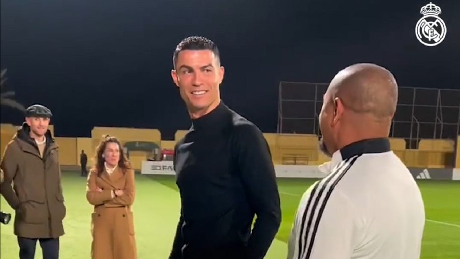 Na filmikach, które trafiły do sieci możemy zauważyć jak Ronaldo rozmawia z trenerem Carlo Ancelottim czy legendą klubu Roberto Carlosem.