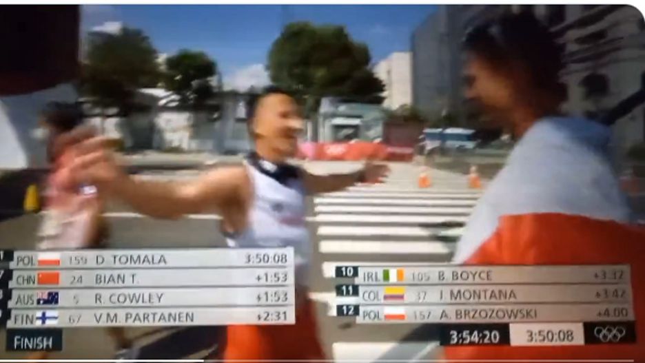 Dawid Tomala mistrzem olimpijskim w chodzie na 50 kilometrów. Na mecie Artur Brzozowski (dwunasty w stawce) serdecznie wyściskał kolegę i zamienił z nim kilka słów. Ta rozmowa jest prawdziwym hitem, robi wielką furorę w sieci.