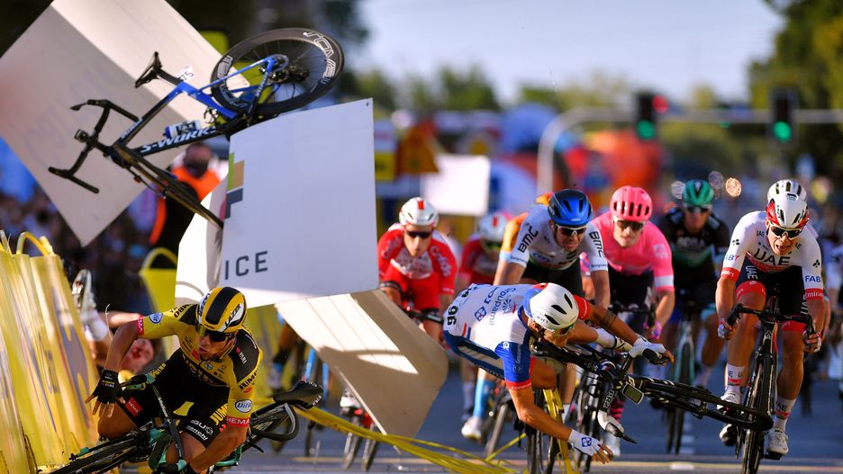 Makabryczny wypadek, do którego doszło podczas pierwszego etapu tegorocznego Tour de Plogne, odbił się szerokim echem na całym świecie. Fabio Jakobsen w trakcie walki o wygraną został wepchnięty w barierki ochronne przez swojego rodaka Dylana Groenewegena. Siła uderzenia była tak duża, że Jakobsenowi spadł kask z głowy i doznał wielu obrażeń ciała.