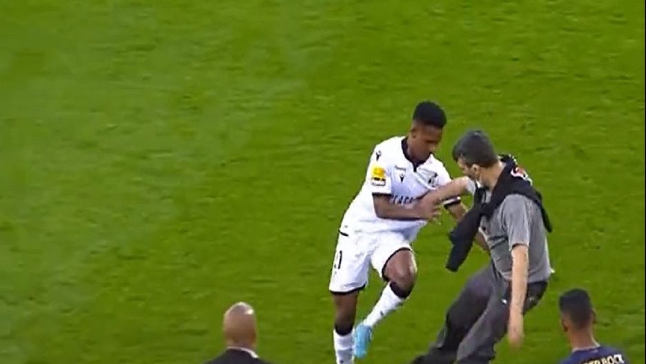 Do niebezpiecznie wyglądającego zdarzenia doszło w trakcie meczu ligi portugalskiej. Na boisku pojawił się nieproszony gość i zaatakował piłkarza gospodarzy.