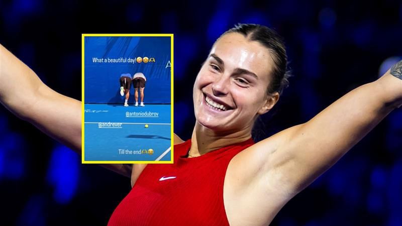 Jedno z najnowszych nagrań przedstawia Antona Dubrowa i Andrieja Wasilewskiego, którzy... są "ostrzeliwani" przez Sabalenkę piłkami do tenisa (zrzut ekranu możesz zobaczyć na końcu artykułu).