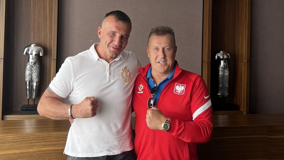 Paweł Jóźwiak nie odmówił sobie zdjęcia z Cezarym Kuleszą, prezesem Polskiego Związku Piłki Nożnej. Kulesza także zaprezentował się w pozycji bokserskiej w półformalnym wydaniu. Najważniejsza osoba PZPN-u założyła dres reprezentacji Polski na niebieską polówkę. Obaj panowie są bojowo nastawieni przed meczem Biało-Czerwonych.