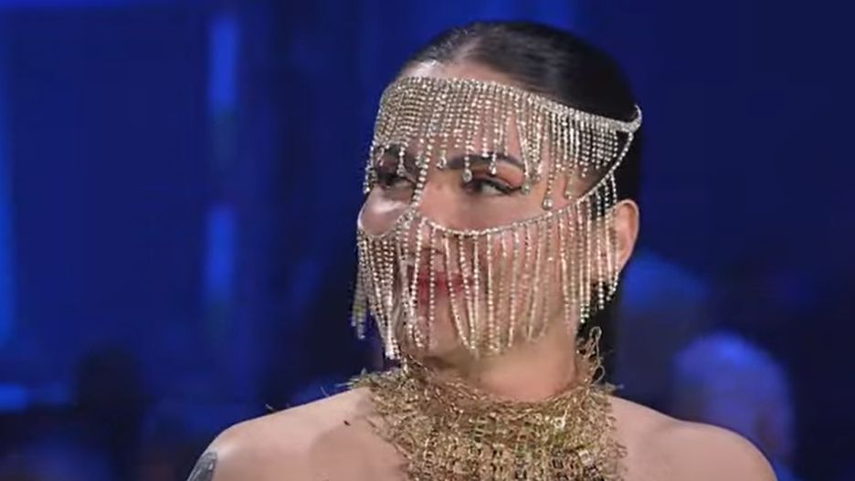 Brodnicka założyła na siebie krótki złoty top odsłaniający ramiona, a jej twarz częściowo okrywała charakterystyczna maska składającą się z drobnych frędzli. Jej strój dość mocno kojarzył się z kulturą Bliskiego Wschodu. Sama Brodnicka przyznawała, że jej strój był zainspirowany postacią słynnej egipskiej władczyni z czasów starożytnych - Kleopatry.
