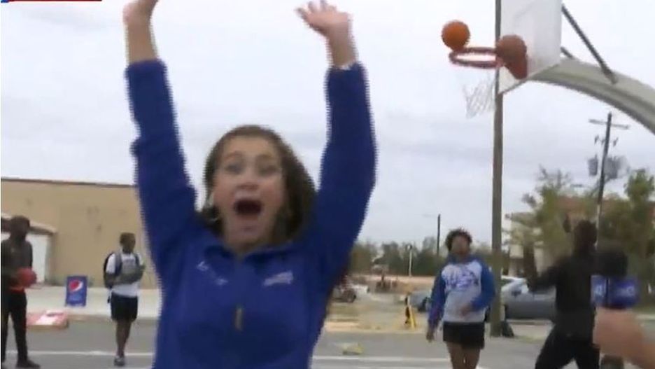 Hoffman odwróciła się z uniesionymi do góry rękoma. Nie wiedziała jednak, że w momencie gdy się odwróciła od kosza, piłka zaczęła tańczyć po obręczy i ostatecznie z niej... wypadła. Widział to lokalny urzędnik. Nie chciał jednak sprawiać przykrości dziennikarce i nie powiedział jej na wizji, że piłka jednak nie wpadła do kosza. Zobaczcie: