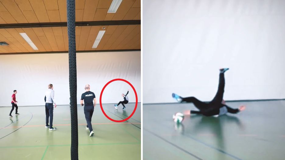 Na przedstawionej akcji widać, jak drużyna, w składzie której znaleźli się m.in. Kamil Stoch i Dawid Kubacki przeprowadza atak. Podbita przez blok piłka została niedokładnie dograna przez jednego z członków sztabu. W pogoń za nią ruszył Piotr Żyła, który próbował uratować akcję nogą.