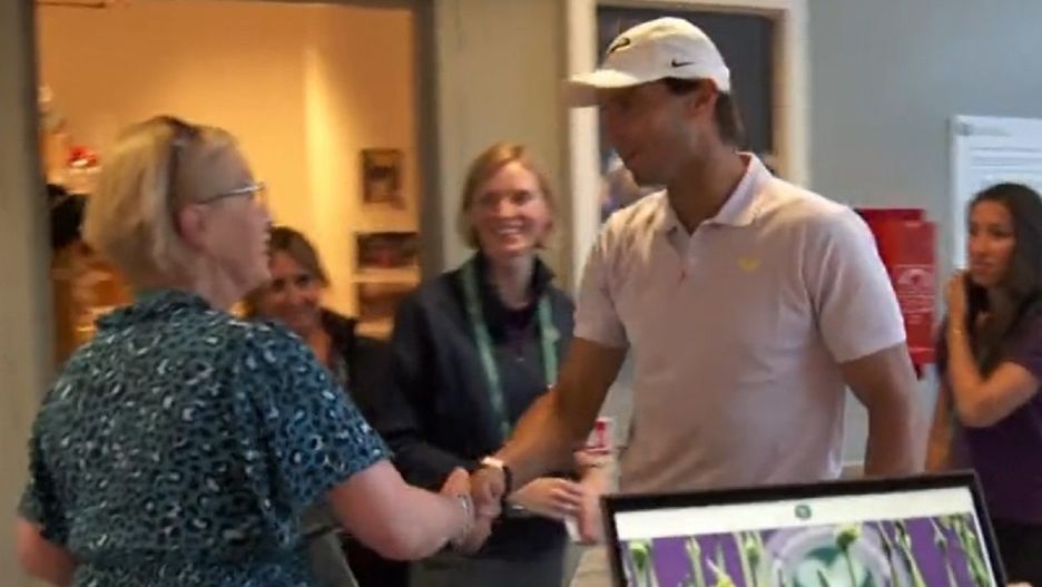 W filmie, opublikowanym przez oficjalne konto Wimbledonu, widać Rafaela Nadala, który przechadza się jeszcze w stroju tenisowym i z torbą po pomieszczeniach administracyjnych na kortach Wimbledonu.