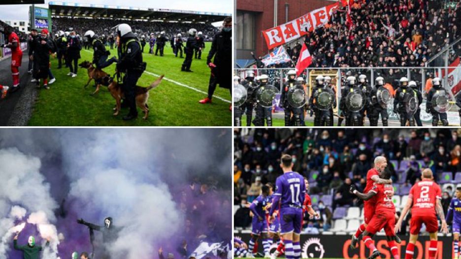 Do skandalicznych scen doszło w lidze belgijskiej, w derbowym pojedynku pomiędzy Beerschot-Wilrijk a Royal Antwerp. Chuligani wdarli się na plac gry. Musiała interweniować policja.