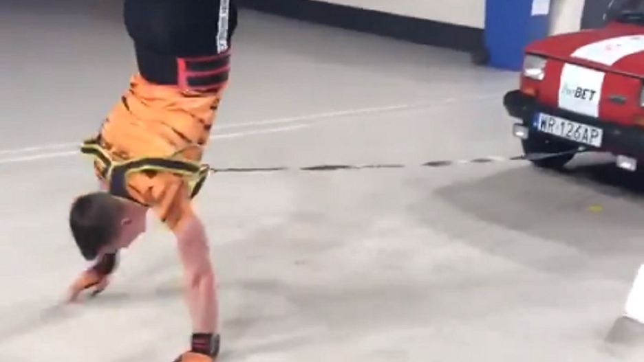 "Niczego podobnego jeszcze nie widzieliście. Wojciech Sobierajski atakuje rekord Polski (a pewnie i świata) w ciągnięciu samochodu idąc na rękach" - napisał na swoim profilu na Twitterze Maciej Łuczak, dziennikarz TVP Sport. Do wpisu dołączył wideo, na którym Wojciech Sobierajski walczy o ustanowienie rekordu.