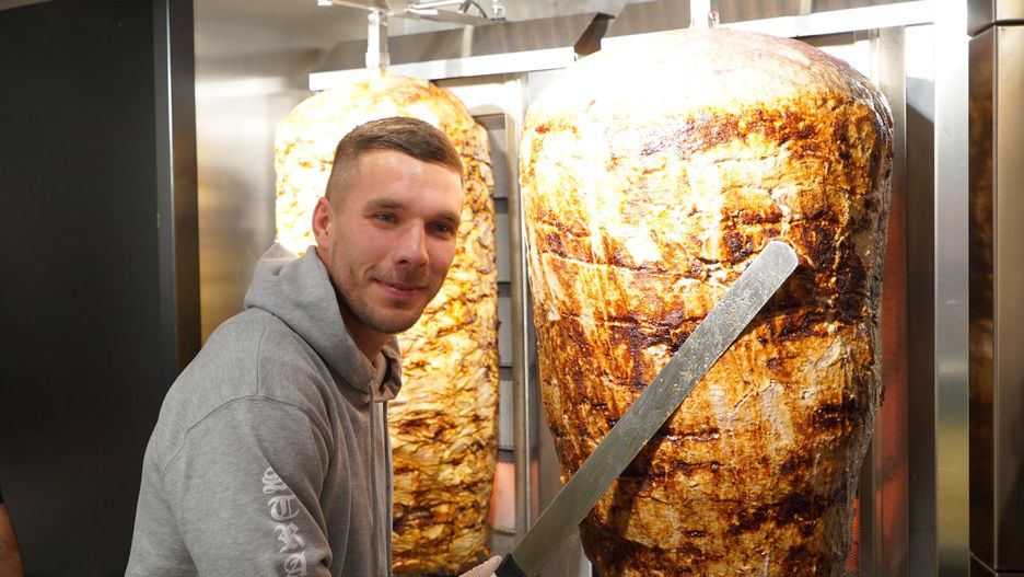 Dziennikarz "Super Expressu" odwiedził berliński Mangal Döner x Lukas Podolski. Gdy podszedł bliżej, od razu dostrzegł wielką kulę z mięsem i dwóch tureckich pracowników, którzy w pocie czoła przygotowywali kebaby.