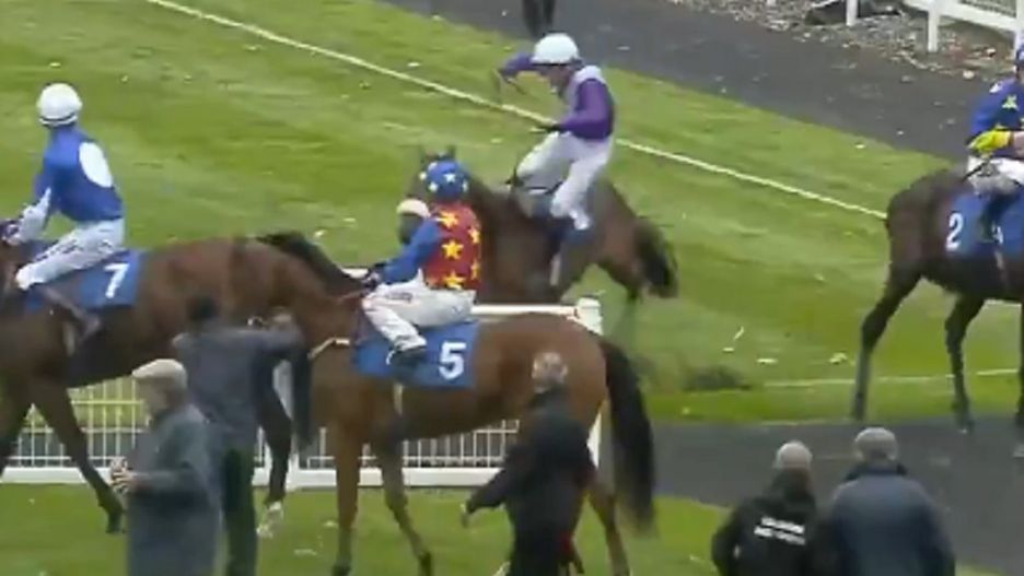 Irlandzki dżokej doznał obrażeń twarzy w wypadku na wyścigach. Uderzył w ogrodzenie, po tym jak jego koń całkowicie zwariował. Nagranie budzi ogromne emocje w sieci.