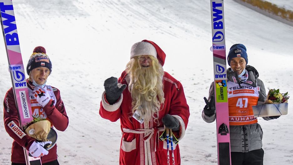 Piotr Żyła i Dawid Kubacki uplasowali się na podium sobotniego konkursu Pucharu Świata w Kuusamo. W Finlandii obecny był Święty Mikołaj, więc może to on, robiąc sobie fotkę z Żyłą, przyniósł mu szczęście?