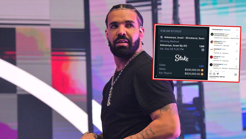 Drake to jeden z najpopularniejszych raperów na świecie. Kanadyjczyk znany jest także jako kibic sportowy. Chętnie korzysta także z zakładów bukmacherskich, gdzie obstawia ogromne pieniądze. Przed sobotnią galą UFC postawił aż 500 tys. dolarów na zwycięstwo Israela Adesanyi. Musiał jednak obejść się smakiem.