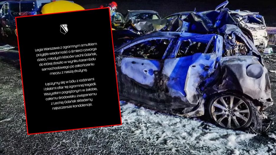 Legia Warszawa z ogromnym smutkiem przyjęła wiadomość o śmierci czworga dzieci, młodych kibiców Lechii Gdańsk, do której doszło w wyniku karambolu samochodowego po zakończeniu meczu z naszą drużyną. Łączymy się w bólu z rodzinami i bliskimi ofiar tej ogromnej tragedii. Wszystkim pogrążonym w żałobie, całemu środowisku związanemu z Lechią Gdańsk składamy najszczersze kondolencje - możemy przeczytać na facebookowym profilu stołecznego klubu.