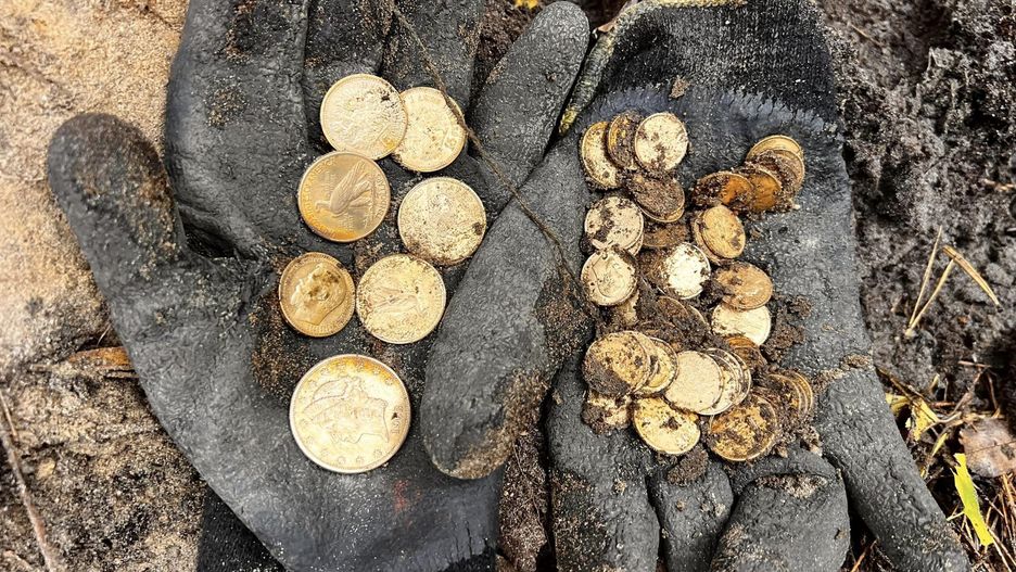Odnaleziono aż 70 monet wykonanych ze złota o próbie 900. Z informacji zamieszczonej na profilu stowarzyszenia w serwisie Facebook dowiadujemy się, że są to amerykańskie dolary (20, 10 i 5) oraz carskie ruble (15 i 5). Łączna waga znaleziska wynosi 404 g.