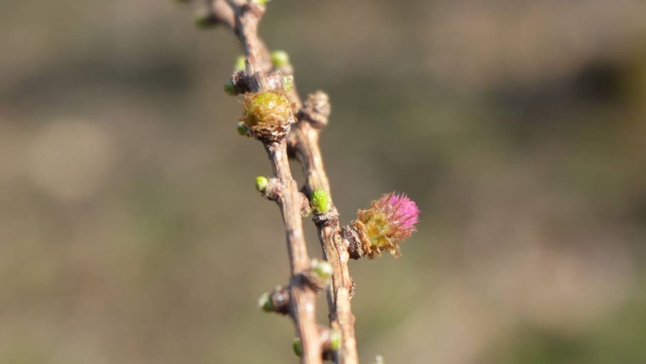 Powiedzenie, że "chyba je pogrzało" nabiera dosłownego znaczenia, kiedy dużo wcześniej niż zwykle spotykamy na wzgórzach Bramy Lubawskiej modrzewie zabierające się za kwitnienie. Kwiaty żeńskie są większe, purpurowoczerwone a męskie okrągłe, jasnożółte - informuje KPN.
