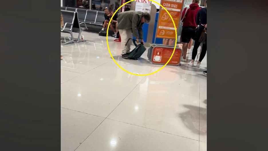 Na wideo da się zauważyć mężczyznę, który planuje wcisnąć swój bagaż podręczny do ramy pomiarowej (linii lotniczej EasyJet). Turysta ma świadomość, że walizka jest za duża i nie zmieści się tak łatwo do małego kontrolera. Nie chce za nią dopłacać, więc w pewnym momencie decyduje się na desperacki krok.