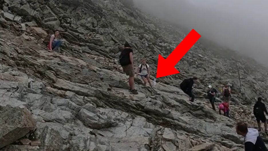 Pan Grzegorz ostatnio wybrał się na Rysy. Szczyt postanowił zdobyć od strony słowackiej. W trakcie wyprawy zarejestrował niebezpieczny moment - pewnej kobiecie wypadła butelka.