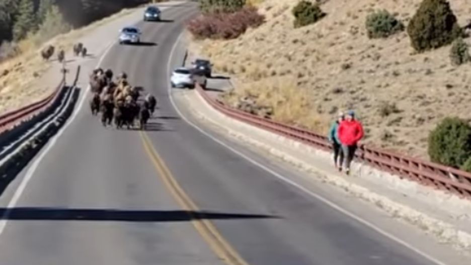 Taki finał wycieczki po parku narodowym Yellowstone niejednej osobie przysporzyłby strachu. Po tym, jak galopujące stado dzikich bizonów zaczęło zbliżać się do spacerujących turystów, zrozumieli, że to najwyższa pora, by brać nogi za pas. Schronienie znaleźli z boku mostu.