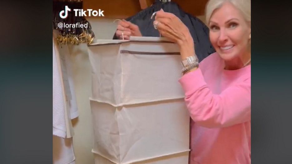 Lora - znana w mediach społecznościowych jako lorafied - pokazuje na viralowym wideo, jak układa ubrania na wiszących półkach/organizerach, które dostępne są w sklepach Ikea, Pepco czy Jysk.