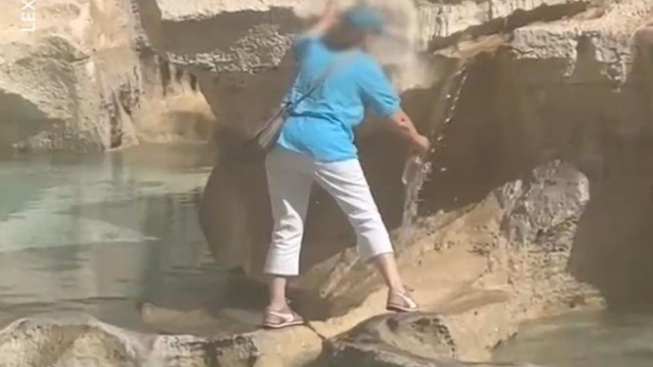 Tam wyciągnęła butelkę i napełniła ją wodą, ściekająca z wierzchołka skalnej budowli. Ludzie obserwujący całą sytuację byli wyraźnie zdziwieni niecodziennym wyczynem. Warto podkreślić, że w Rzymie dostępne są za darmo krany z wodą pitną, a woda z fontann nie nadaje się do picia.