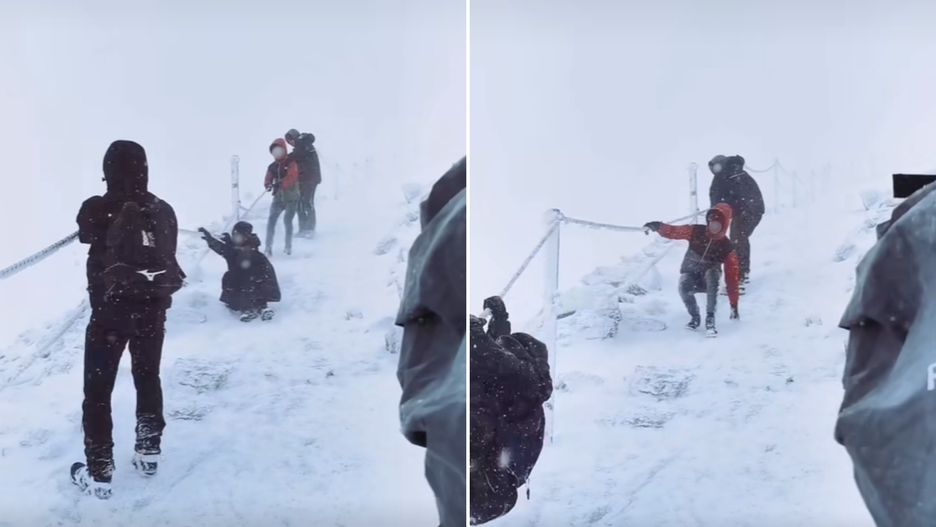 Aż trudno uwierzyć, że to wydarzyło się naprawdę. Grupa chłopców wybrała się na Śnieżkę w obuwiu, które nadaje się co najwyżej do spacerów po równym podłożu. "Bohaterowie" nagrania obiegającego sieć przewracali się jeden po drugim.