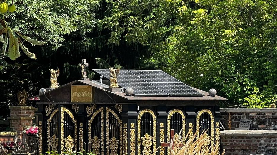 Zdjęcie, które w ostatnim czasie podbija internet, przedstawia okazały grobowiec na cmentarzu w Katowicach. Mogiła ma kształt kaplicy, a liczne złote zdobienia na czarnych ścianach i dach z marmuru prezentują się naprawdę imponująco. Co jednak najciekawsze, na jej dachu zamontowano fotowoltaikę.