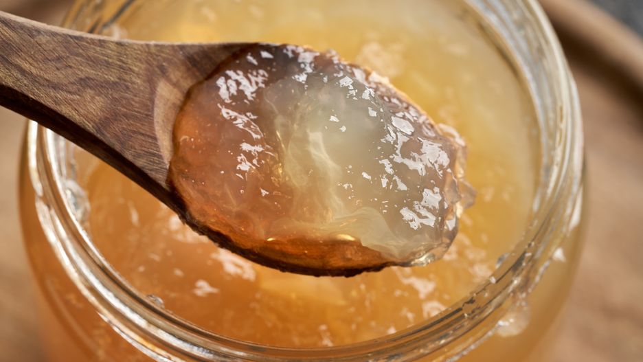 Żelatyna jest naturalnym białkiem pozyskiwanym z kości, ścięgien, chrząstek i skóry zwierząt. Dzięki zawartości dwóch aminokwasów - hydroksyprolinie i prolinie, skutecznie wspomaga odbudować tkankę łączną w naszym organizmie. Poza tym, że ta substancja wzmacnia mięśnie i kości, to także radzi sobie z bólami spowodowanymi m.in. reumatoidalnym zapaleniem stawów, posiada również szereg prozdrowotnych właściwości.